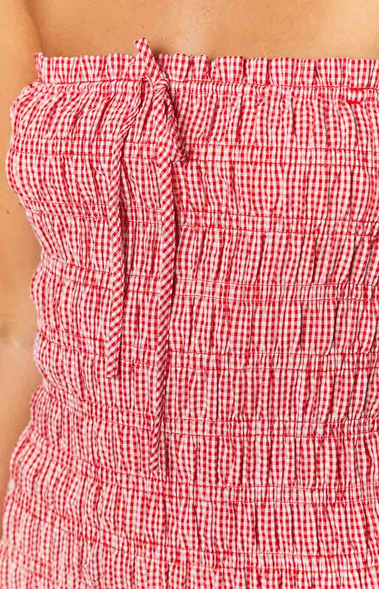 - This strapless red dress it's perfect for a picnic date or a brunch date. Wear this stunning dress with a brown boots or sandals and pair it with a small shoulder bag.